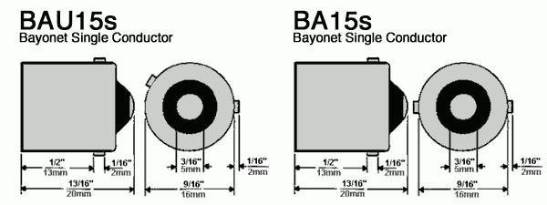 Hyper Silver & LEDs Bulb Best Colors for all Clear Lens - Blinker or Signal Lights, Tail Lights, Small Lights, Stop Lights. White, Amber, Red, Blue Color. T10, 194, 168, 158, 2825. 1156 BA15s, 1156B BAU15s & 1157 BAY15d Image 1156 & 1156B Base Types |